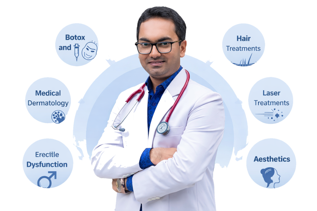 Dr. Aktaruzzaman Suman Khan is a specialist in Skin, Hair and Laser treatments. He provides modern and advanced treatment solutions for hair loss, acne scars, skin rejuvenation, laser procedures and aesthetic treatments. Our goal is to provide safe, effective and modern medical care to help patients achieve healthy skin, strong hair and improved confidence.
